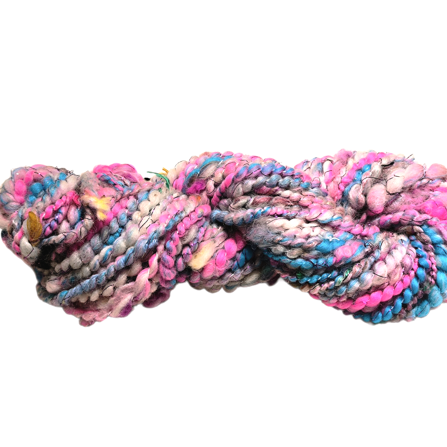 Χειροποίητο γνεσμένο art νήμα με spiral υφή, πλούσιο χαρακτήρα και μια διακριτική μεταλλική λάμψη.