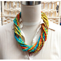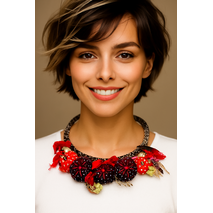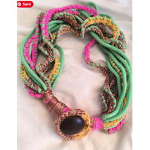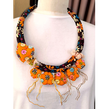 Κάντε τη διαφορά με ένα μοναδικό χειροποίητο κολιέ , φτιαγμένο με μεράκι .Ένα ιδιαίτερο κόσμημα που συνδυάζει πολύχρωμες υφές, και ρετρό-μποέμ αισθητική. Το κολιέ διαθέτει: Ζωντανά υφασμάτινα στοιχεία Λεπτομέρειες με κλωστές Παιχνιδιάρικα στρογγυλά λουλούδια με...