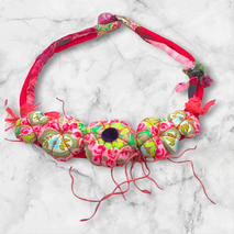 Ένα κολιέ που φοράει… τέχνη! Χειροποίητο, πολύχρωμο και μοναδικό, αυτό το pop art εμπνευσμένο κολιέ είναι φτιαγμένο από βαμβακερά υφάσματα με έντονα σχέδια και παιχνιδιάρικες αντιθέσεις. Κάθε "λουλούδι" ράβεται προσεκτικά στο χέρι, δίνοντας ζωή σε ένα κόσμημα που τραβά τα βλέμματα και...