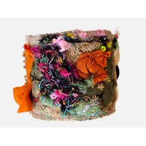Fiber textile cuff! Δουλεμένο με μικρά μεταξωτά κομμάτια υφάσματος- στοιχεία χειροποίητα,,πούλιες -...