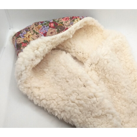 Φτιαγμένο απο οικολογική γούνα , και 100% βαμβακερό floral ύφασμα.