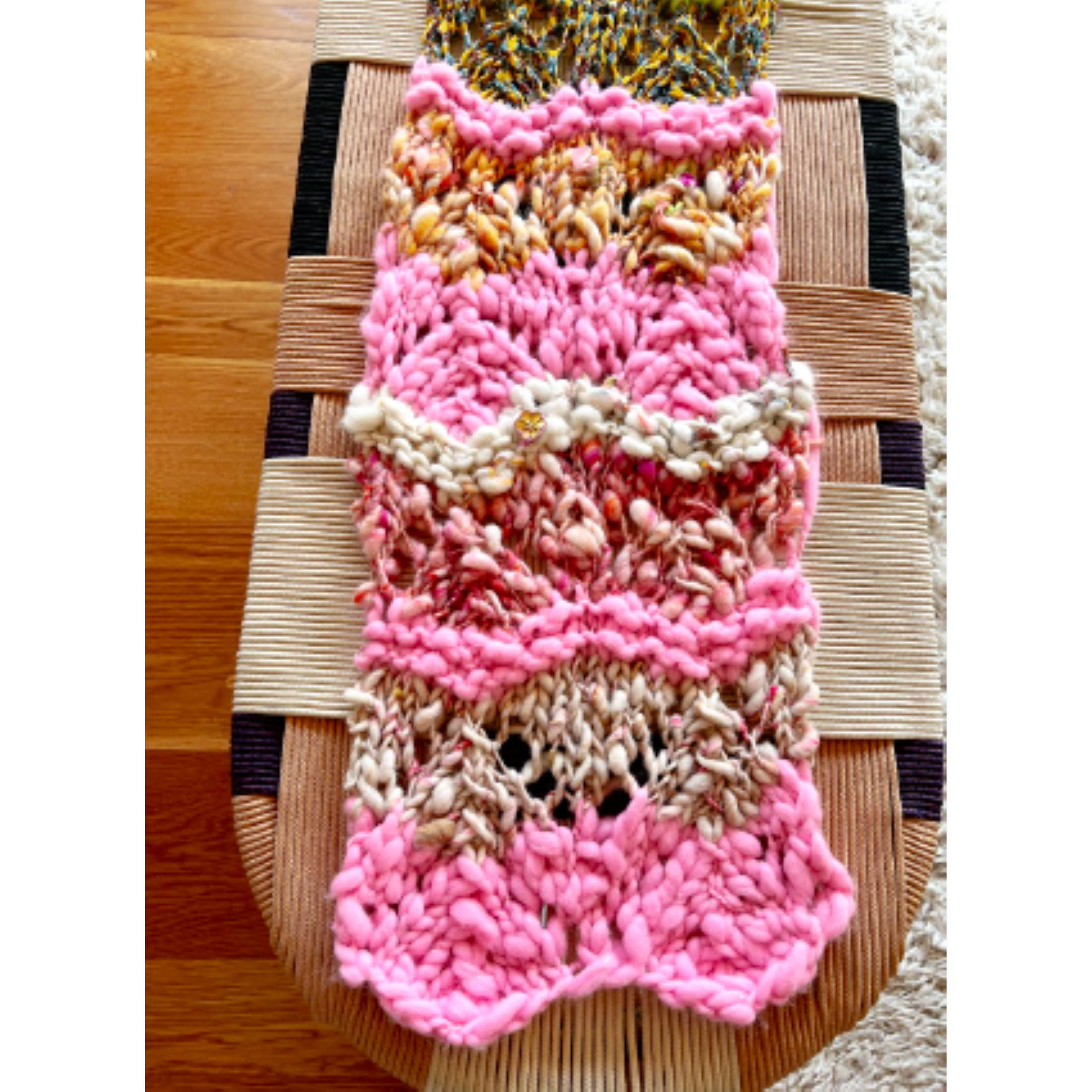 11 χρώματα απο νήμα super bulky ( μπορειτε να χρησιμοποιήσετε και απο τα περισεύματα σας νήματα σε διάφορα πάχη πλεκοντας τα μαζί , αρκεί να διατηρήσετε το δείγμα που σας δίνουμε ώστε να πλεκτεί στο μέγεθος πού ανέφερα .