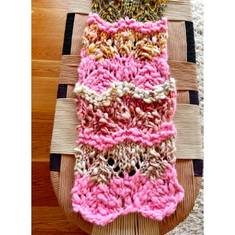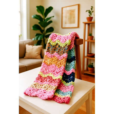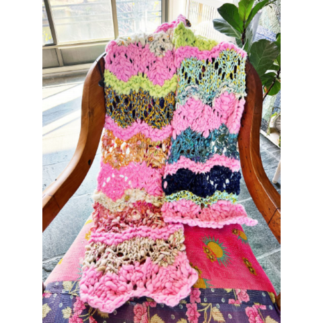 Σχεδιασμένο με χονδρό -Super Bulky νήμα ( εναλλακτικα πλεκετε 2 -3 νήματα μαζί) και επαναλαμβανόμενα μοτίβα προσφέρει χαλαρή εμπειρία πλεξίματος και εντυπωσιακό αποτέλεσμα.