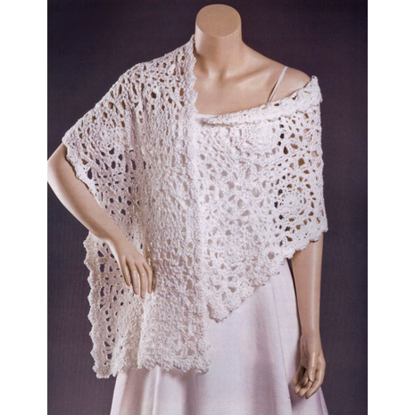 Το αποτέλεσμα είναι ένα φίνο, ρομαντικό σάλι που “αγκαλιάζει” τους ώμους απαλά — τέλειο για νύφη ή για δώρο χειροποίητης αγάπης.