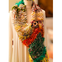 Πλεκτό πολύχρωμο κασκόλ πλεγμένο με ιδιαίτερα μαλλια , τα οποία εχω μίξει , οπως μαλλι, ακρυλικό,μοχέρ, ribon, και διάφορα "περίεργα" νήματα. Μήκος 2 μέτρα, φάρδος 26 εκ. Μοναδικό κομμάτι, απαλό ,ζστό με φωτεινά χρώματα Πλυσιμο στο χέρι , απλώνεται flat για στέγνωμα.