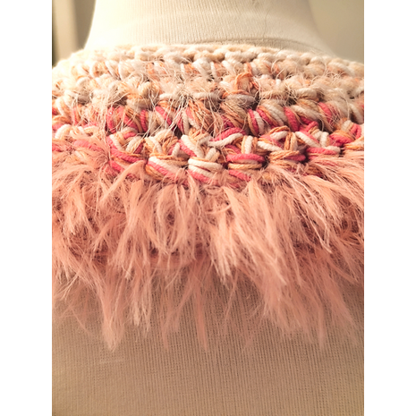Έχω χρησιμοποιήσει πολλά διαφορετικά νήματα, ανακατεμένα για να δημιουργήσω αυτό το μοναδικό πλεκτό γιακά.