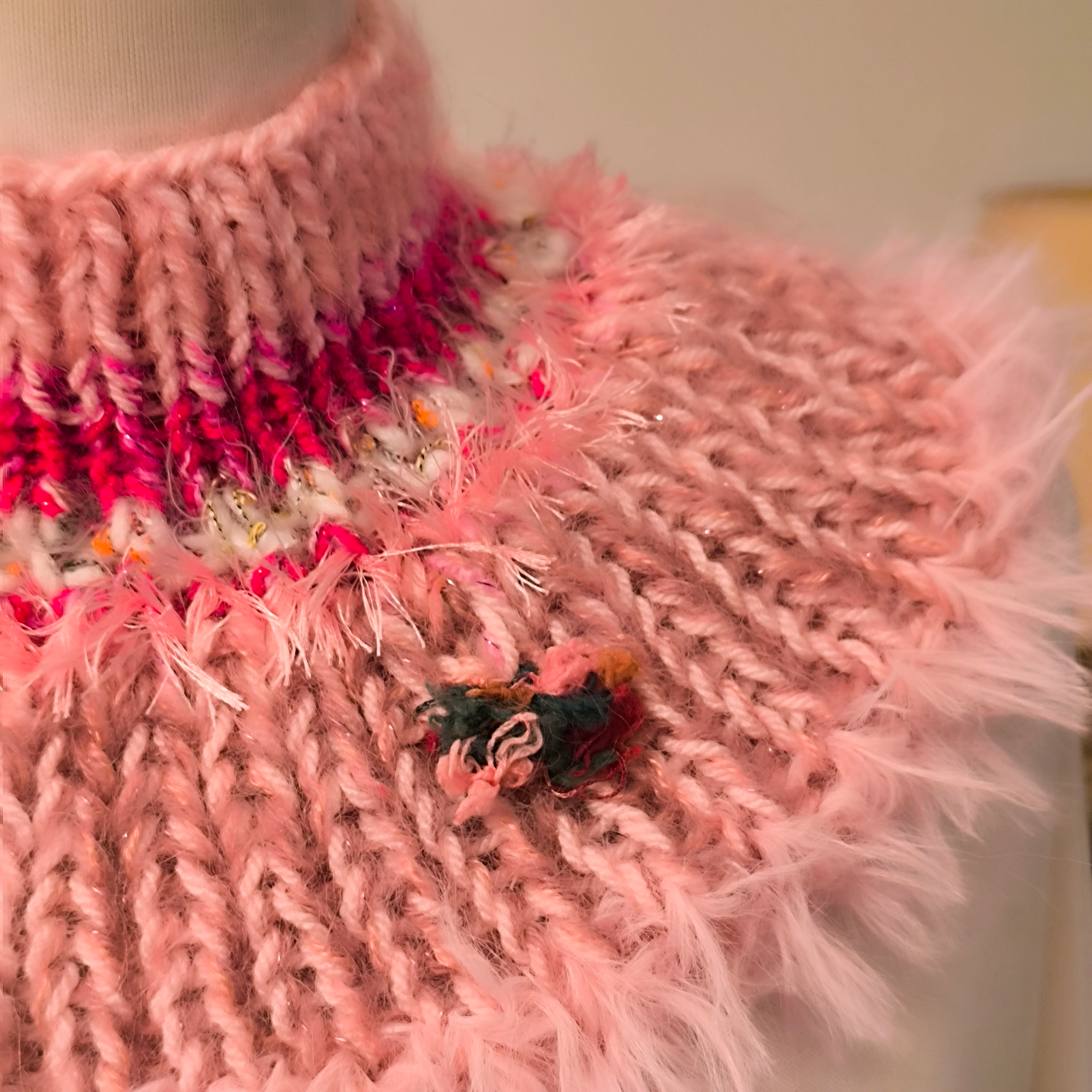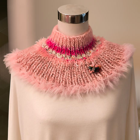 Έχω χρησιμοποιήσει πολλά διαφορετικά νήματα, ανακατεμένα για να δημιουργήσω αυτό το μοναδικό πλεκτό γιακά.