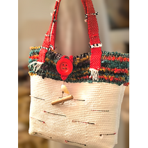 Αν σας αρέσει to Bohemian outfit, αυτή η τσάντα φτιάχτηκε για σας, Τσάντα υφασμένη στον rigid loom Kromski. Βαμβακερό στημόνι, και μαλακό polyester tape yarn στο υφάδι. Η τσάντα εχει υφανθεί μαζί με μικρά ανακυκλώμενα υφασματάκια στην μπροστινή 'οψη. Εσωτερικά.εχει επενδυθεί με βαμβακερή...
