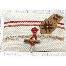Καλοκαιρινός φάκελος υφασμένος στον rigid loom -χειροποίητος. Κλασικκό σχέδιο, λευκό χρώμα Φοδραρισμένος με κόκκινη βαμβακερή επένδυση, εσωτερικη τσεπούλα. πανέμορφο και ιδιαίτερο κούμπωμα... Εσωτερική επένδυση απο βαμβακερό...