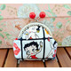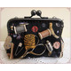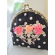 Χειροποίητο Μεταξωτό Πορτοφολάκι Kiss Lock – Καρό Σχέδιο με Μαύρες Μπίλιες και Μεταλλικό Charm (10×12 cm)