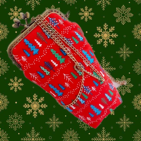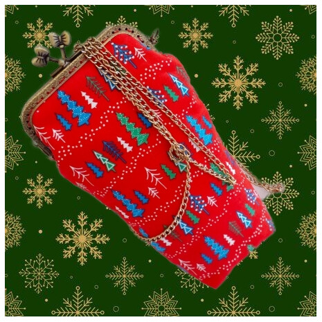 Βαμβακερό ύφασμα -christmas print, μεταλλικό bronze πλαίσιο , και αλυσίδα 1.40 εκ. μήκος,