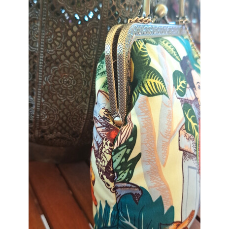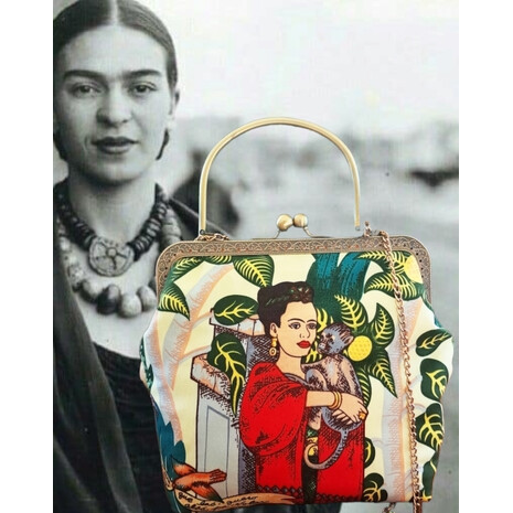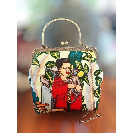 Κομψό , ιδιαίτερο τσαντάκι, με τυπωμένο ύφασμα με θέμα την Frida.- by Alexander hENRY fABRICS- Frida's Garden