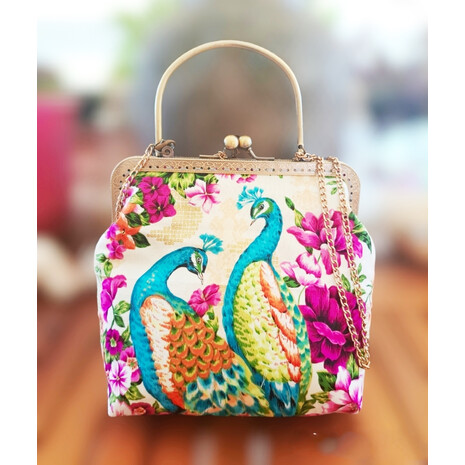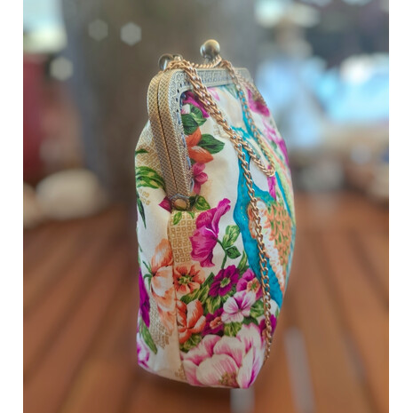 Κομψό , ιδιαίτερο τσαντάκι, φτιαγμένο με ενα πολύ όμορφο βαμβακερό ύφασμα!