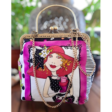 Κομψό , ιδιαίτερο τσαντάκι, με υφασμα loralie designs.