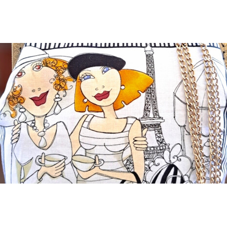 Αλυσίδα μπρονζέ, μήκος 1.25 εκ , η οποία αφαιρείτε εύκολα ,ώστε να κρατηθεί απλά σαν τσαντάκι από το μεταλλικό στρογγυλό χερούλι.
