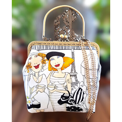 Μεταλλικό πλάισιο για να κρατηθεί στο χέρι, και έχτρα μπρονζέ αλυσίδα για να περαστεί στον ώμο.