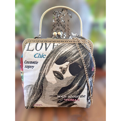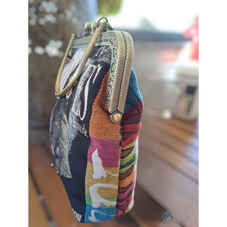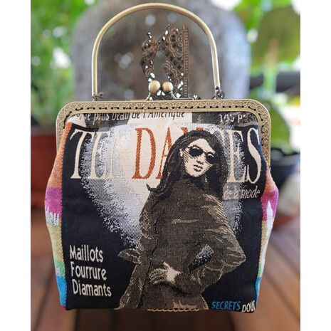 Κομψό , ιδιαίτερο τσαντάκι, φτιαγμένο με ενα πολύ όμορφο vintage ύφασμα!