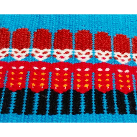 Το εργο αυτο εχει υφανθει με τεχνική krokbragd, σε φορητό αργαλειό KROMSKI ,χρησιμοποιώντας 3 χτένια.