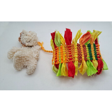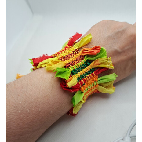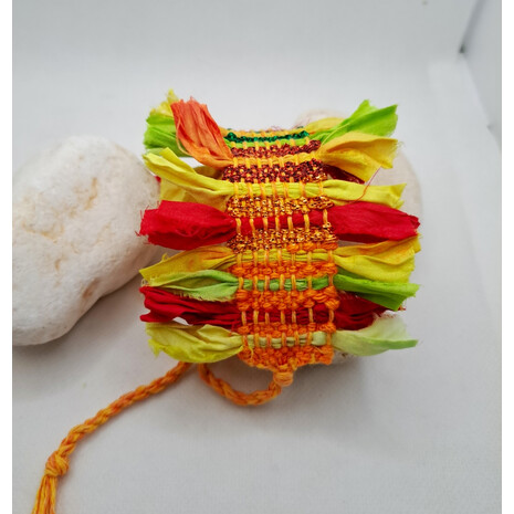 Όμορφο υφαντό βραχιόλι υφασμένο με βαμβακερό νήμα και μεταξωτή κορδέλα..